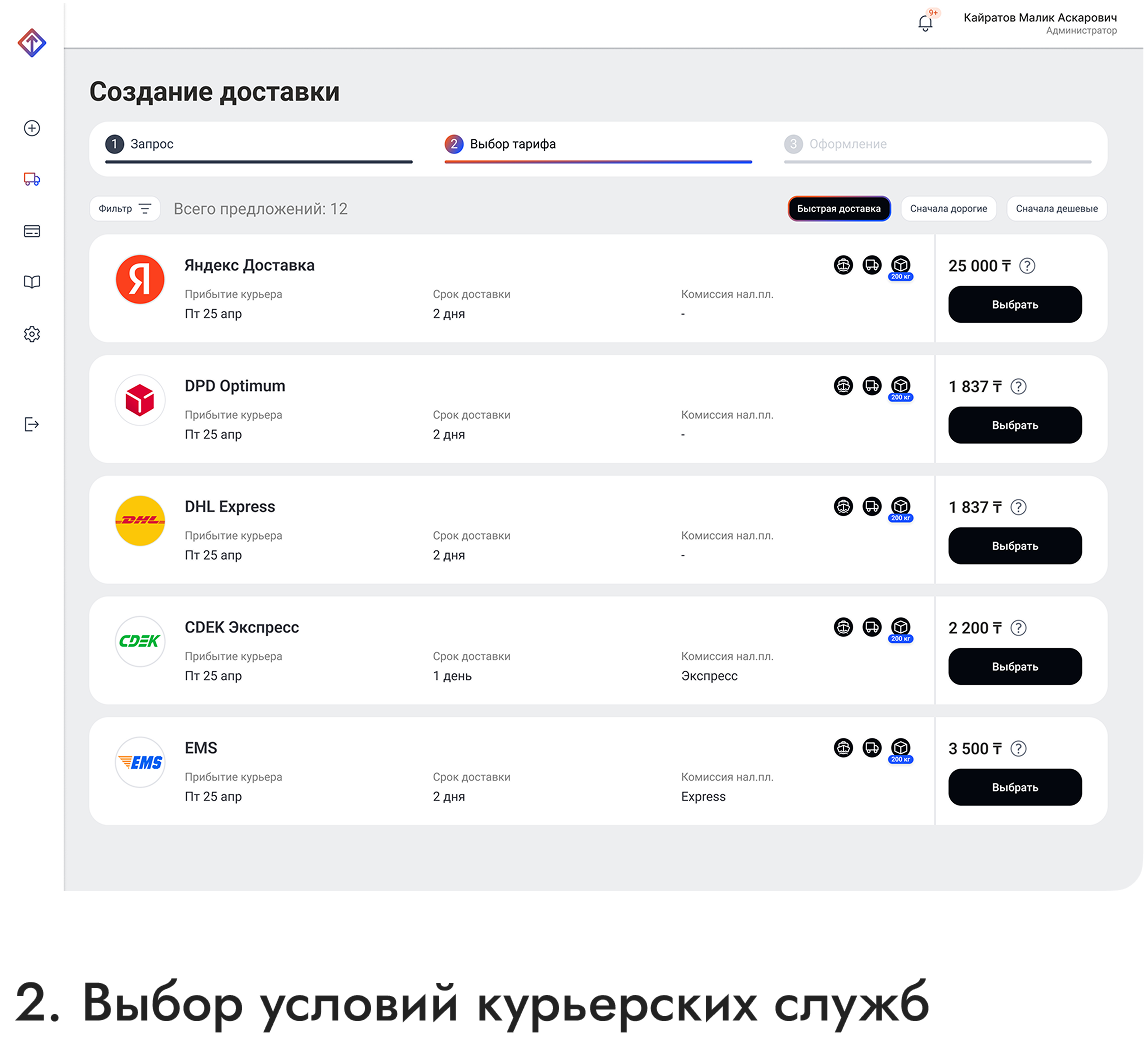 The service allows corporate clients to compare delivery providers, analyze offers, and choose the most efficient conditions for their logistics operations.